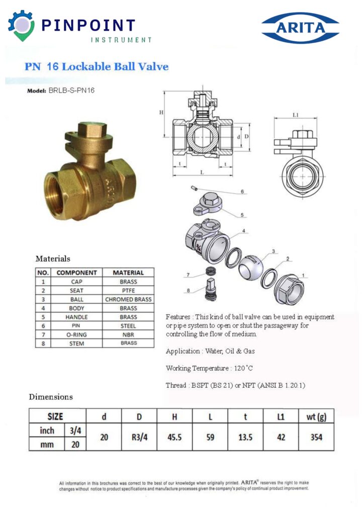 ⚙️ หลักการทำงานของ Ball Valve Arita รุ่น BRLB (Brass Ball Valve)