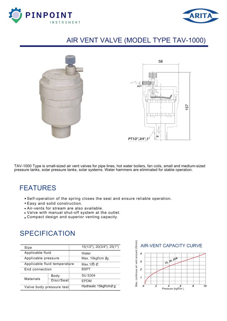 หากคุณกำลังมองหา วาล์วระบายอากาศ (Air Vent Valve) ที่มีคุณภาพสูง เชื่อถือได้ และติดตั้งง่าย ARITA TAV-1000 คือตัวเลือกที่คุณไม่ควรพลาด!