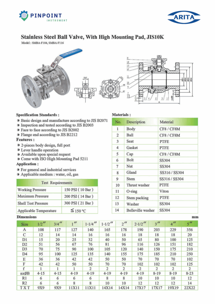 ด้วยวัสดุ Stainless Steel (SS304, SS316) ทำให้ ARITA Ball Valve JIS10K มีความทนทานต่อการใช้งานในสภาวะที่รุนแรง ทั้งน้ำ ไอน้ำ น้ำมัน ก๊าซ และสารเคมี จึงเป็นตัวเลือกที่เหมาะสมสำหรับโรงงานอุตสาหกรรม โรงไฟฟ้า ระบบน้ำ และงานที่ต้องการความปลอดภัยสูง