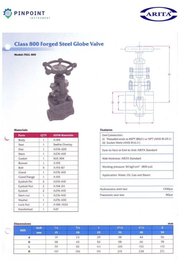 #ForgedSteelValve #Class800Valve #AritaValve #PinpointInstrument #วาล์วเหล็กฟอร์จ #วาล์วไอน้ำ #วาล์วน้ำมัน #SocketWeldValve #NPTValve #BSPTValve #SteamValve #ARITA #GlobeValveClass800 #Pinpoint