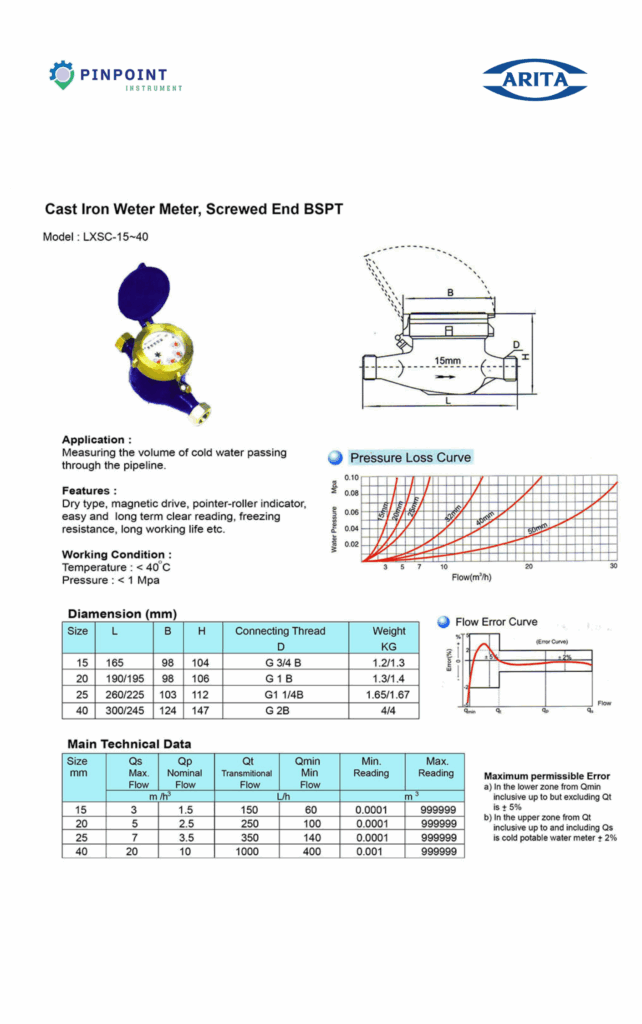 เครื่องวัดน้ำชนิดนี้มาพร้อม ระบบวัดแบบเข็มและตัวเลข ที่มีความละเอียด สามารถตรวจสอบปริมาณน้ำได้แม้ในอัตราการไหลต่ำ ด้วยคุณสมบัติที่ออกแบบมาเพื่อรองรับงานระบบประปาทั่วไป จึงถือว่าเป็นตัวเลือกที่เหมาะสำหรับผู้ใช้งานที่ต้องการควบคุมและบริหารจัดการการใช้น้ำอย่างมีประสิทธิภาพ