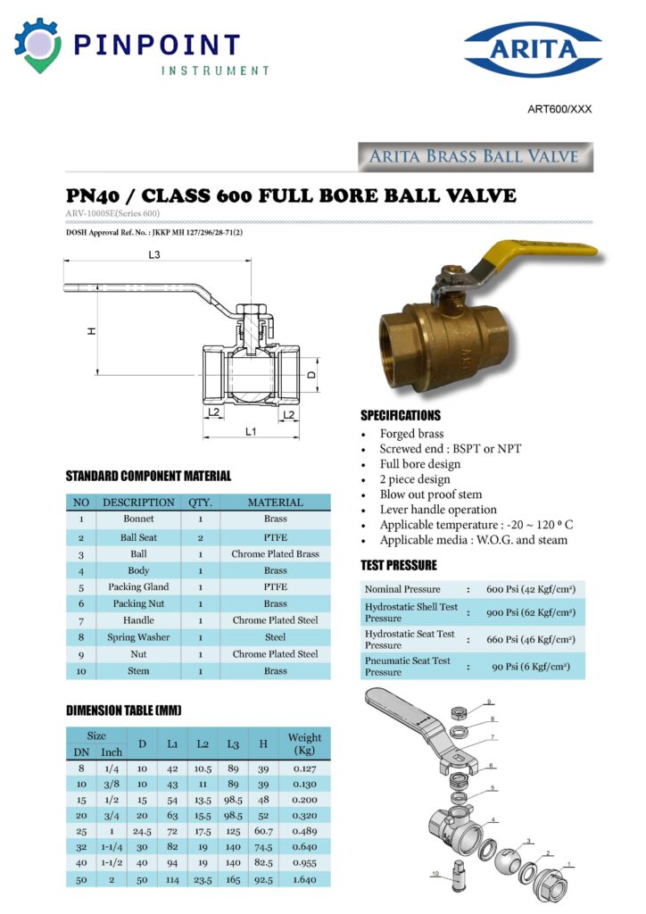 #FullBoreBallValve #PN40BallValve #Class600BallValve #AritaValve #วาล์วแรงดันสูง #บอลวาล์วทองเหลือง #ระบบอุตสาหกรรม #ไอน้ำ #การควบคุมของไหล #PinpointInstrument