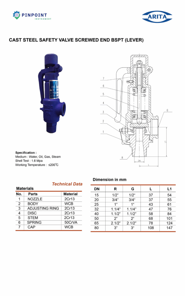 Q3: Safety Valve ARITA มีวัสดุอะไรบ้าง?